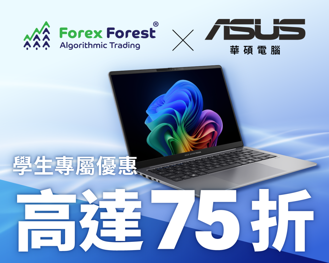 工欲善其事,必先利其器!想在 Algo Trading 的世界穩定獲利,當然有一台高效能電腦 助攻!這次 Forex Forest 聯手 ASUS,為 FF 學員 精選 3款專為程式交易打造的高效能電腦,讓你用最抵價錢,入手最強交易裝備!✨ 數量有限,手快有手慢無!🔹 FF學員專屬優惠🔹 💻ExpertBookP1 系列 -P1403CVA(原價:HKD7,998) 💻ExpertBookB系列 -B3404CMA(原價:HKD9,798) 💻ExpertBookP5 系列 -P5405CSA(原價:HKD11,998) ✨ 購買即享 ✨ ✅ 全新行貨,包 3年原廠保養 🛡 ✅ 贈送 3年McAfee 防毒軟體 🔐 ✅ 高效能運算,助你交易更快更穩🚀⚡ 限量供應,錯過不再!立即預訂!