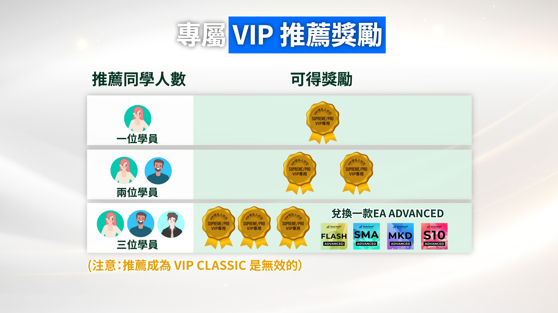 ** VIP-Pro 會籍通過「薪火相傳計劃」成功推薦 了3位全方位學生而獲得